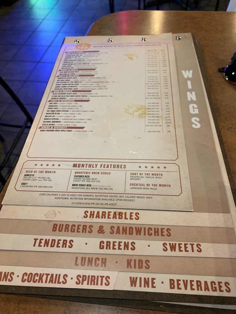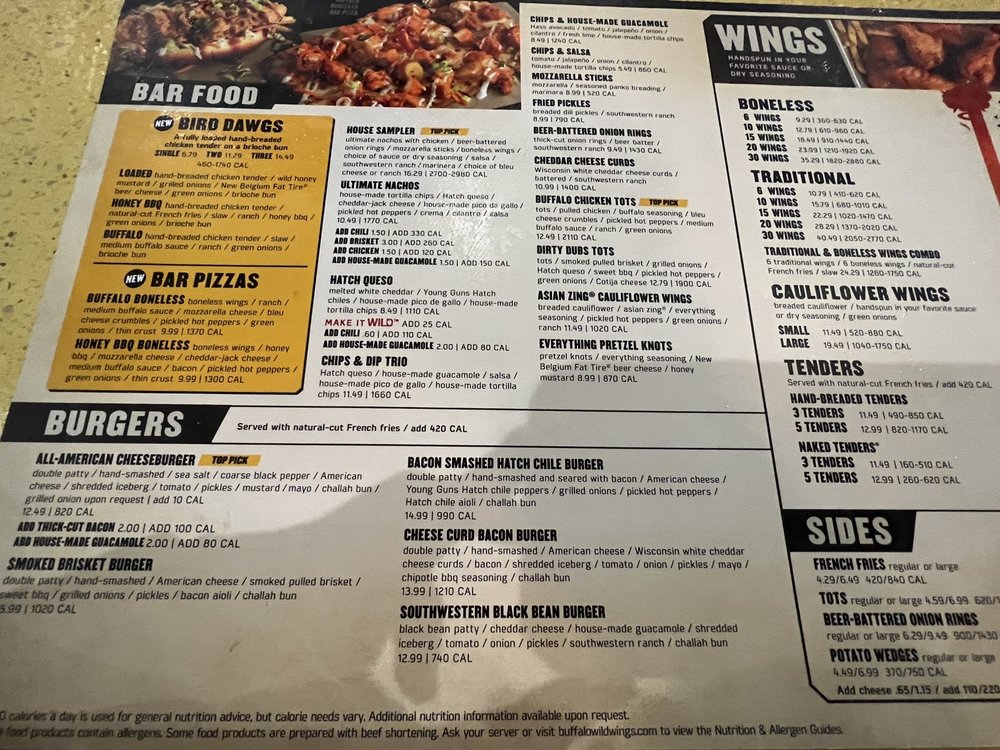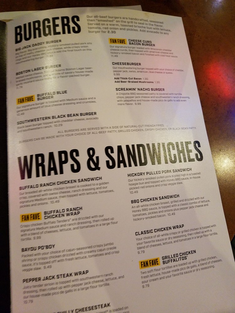 Buffalo Wild Wings Hanover Menu (Update 2025)